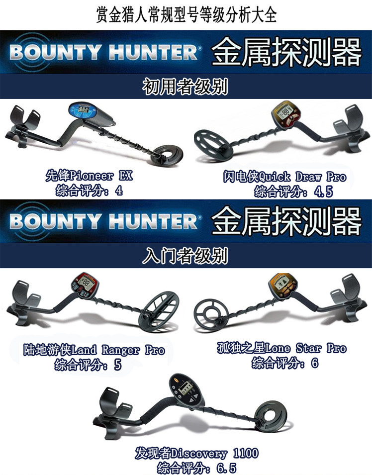 Bounty Hunter 賞金獵人成立于1975年,Bounty Hunter目前是地下野外探寶 地下金屬探測(cè)器制造商,地面探測(cè)產(chǎn)品,匯集了Bounty Hunter公司35年的技術(shù)經(jīng)驗(yàn),擁有多項(xiàng)的技術(shù),尤其適合有特 殊需要的人士使用。Bounty Hunter公司的產(chǎn)品均采用上設(shè)計(jì),且采用優(yōu)質(zhì)的元器件制成,在業(yè)界贏得了良好聲譽(yù)。 Bounty Hunter 賞金獵人是地下野外探寶 地下金屬探測(cè)器品牌。
