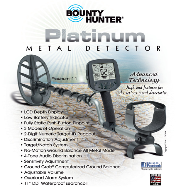賞金獵人Platinum新款白金版液晶顯示型地下金屬探測(cè)器主要用于探測(cè)地下金屬物。它除在軍事上應(yīng)用外,還廣泛用于安全檢查,考古,探礦,探寶,草坪搜尋金屬異物等。Platinum至新款白金版液晶顯示型地下金屬探測(cè)器還特別適用于沙漠中尋找金屬物、各種硬幣等。