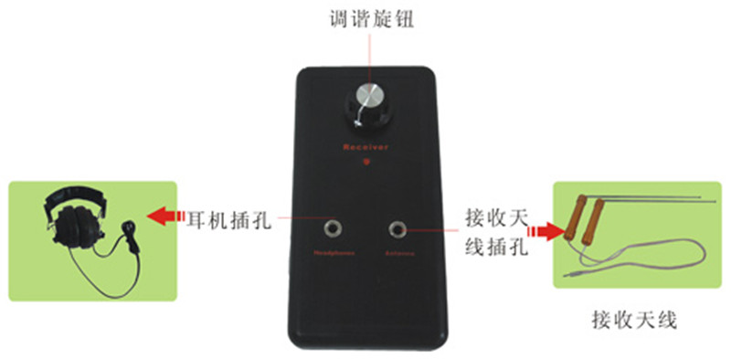 先把發(fā)射天線連接到發(fā)射器對(duì)應(yīng)的插孔內(nèi)。把發(fā)射機(jī)上的開關(guān)打開到ON位置來測(cè)試指示燈。也可以同時(shí)在發(fā)射天線的旁邊放一個(gè)小型晶體管收音機(jī),把頻率調(diào)到中波段530HZ來測(cè)試儀器,打開收音機(jī),如果發(fā)射機(jī)正常工作,則收音機(jī)將受到干擾,然后旋轉(zhuǎn)發(fā)射器面板上的頻率旋鈕將會(huì)使頻率指示燈依次變亮,當(dāng)不同的指示燈點(diǎn)亮的時(shí)候,收音機(jī)干擾音調(diào)會(huì)有變化。
